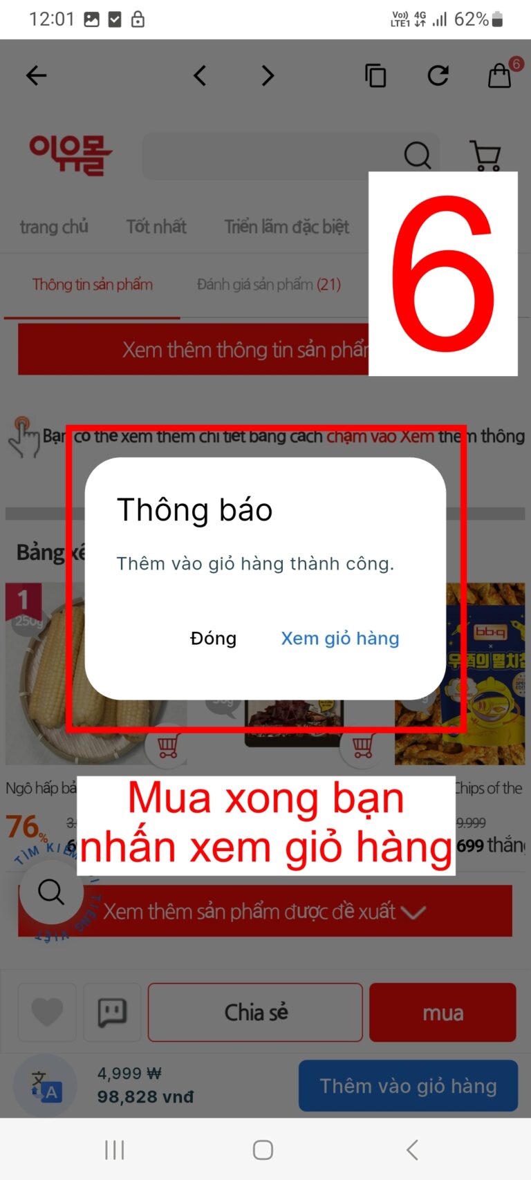 Khi hiện lên khung Thông báo nhỏ, bạn nhấn Xem giỏ hàng để đến trang thanh toán hoặc nhấn Đóng để tiếp tục mua sản phẩm khác (đừng lo lúc này bột uống bạn chọn đã có trong giỏ hàng của app rồi)