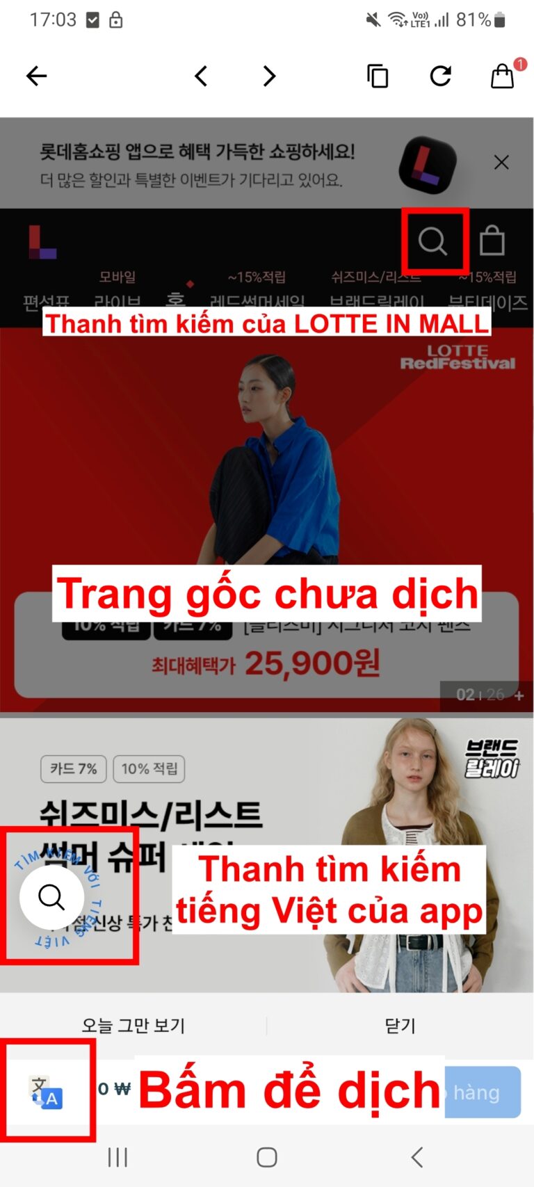 ✍️✍️Mẹo: Bạn tìm kiếm trực tiếp trên thanh tìm kiếm của LOTTE IN MALL hoặc tìm kiếm sản phẩm bằng tiếng Việt bằng công cụ có sẵn của app ORDER HÀNG HÀN QUỐC để kiếm đúng ngay sản phẩm mình muốn nhé!!